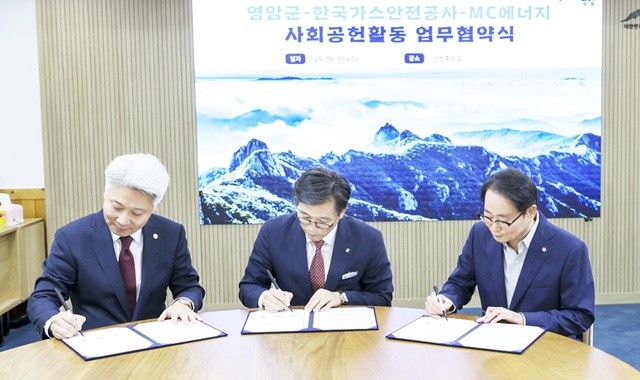 [위키트리 광주전남취재본부 노해섭 기자]영암군(우승희 군수)이 15일 군청에서 한국가스안전공사 전남서부지사, MC에너지(주)와 ‘사회공헌활동 업무협약’을 맺었다.