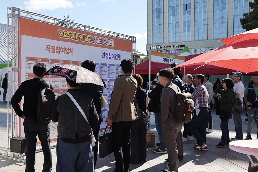 인천시 중구(구청장 김정헌)는 지난 16일 오후 2시부터 4시까지 공항철도 운서역 1번 출구 광장에서 ‘2025 하반기 중구 일자리 박람회’를 300여 명의 구직자가 참여한 가운데 성공적으로 개최했다고 밝혔다.