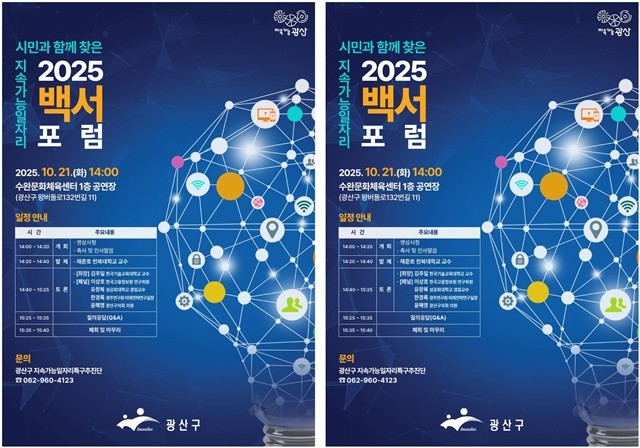 [위키트리 광주전남취재본부 노해섭 기자] 광주시 광산구가 시민들의 오랜 숙의와 참여로 설계한 지속가능 일자리 정책의 청사진을 공개하고, 본격적인 실행을 위한 마지막 여론 수렴에 나선다. 오는 21일 수완문화체육센터에서 열리는 '2025 지속가능 일자리 백서 포럼'이 바로 그 무대다.