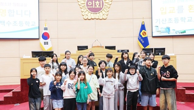 [위키트리 광주전남취재본부 노해섭 기자]전라남도의회 본회의장이 지난 16일, 백수초등학교와 기산초등학교 학생들의 방문으로 활기를 띠었다. 오미화 도의원(진보당·영광2)은 '청소년의회교실'에 참여한 학생들을 맞이해, 민주주의의 원리와 의회의 기능에 대해 생생하게 설명하는 소통의 시간을 가졌다.