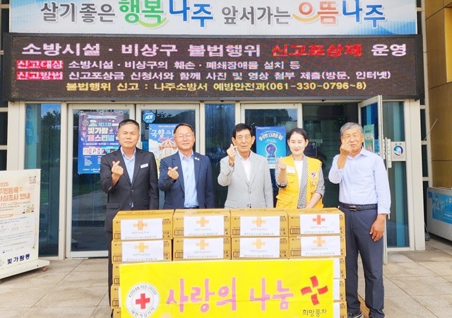 [위키트리 광주전남취재본부 노해섭 기자] 전남 나주시 빛가람동(동장 김귀남)은 대한적십자사봉사회 나주지구협의회(회장 손현화)가 지난 16일 빛가람경로당에 170만 원 상당의 ‘사랑의 쿠키 상자’를 전달했다고 17일 밝혔다.