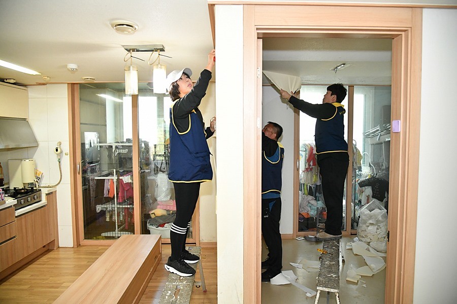 해당 가정은 8남매가 함께 생활하면서 생긴 생활 흔적들로 인해 장판과 벽지가 훼손된 상태였으며, 최근 막내 자녀가 태어나 가족이 함께 지낼 보다 깨끗하고 쾌적한 주거공간 마련이 절실한 상황이었다.