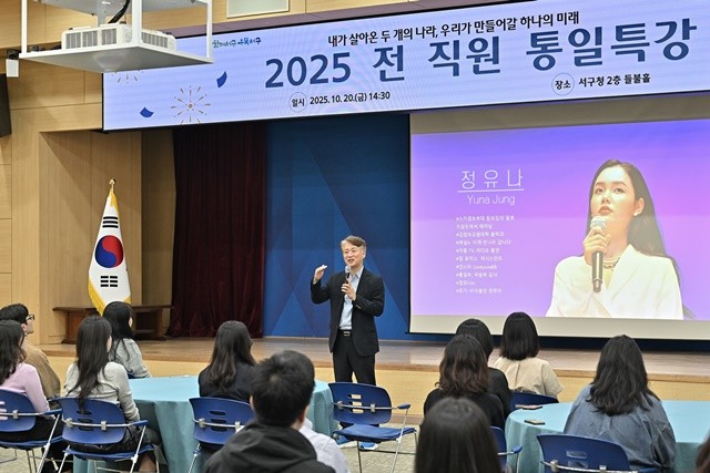 광주 서구(구청장 김이강)는 20일 서구청 들불홀에서 정유나 탈북민 출신 통일강사를 초청해 ‘내가 살아온 두 개의 나라, 우리가 만들어갈 하나의 미래’ 직원 평화통일교육을 실시했다. 광주 서구 제공