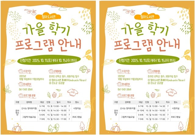 진도군 철마도서관 관계자는 “이번 가을학기 프로그램을 통해 아이들이 즐겁게 배우고 소통하는 시간을 갖길 바란다”라고 말했다.