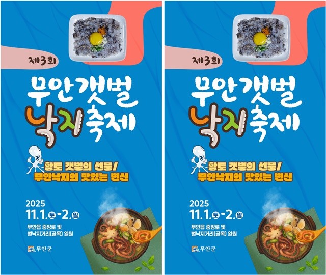 김산 군수는 “가을철 최고의 보양식이자 뻘밭의 산삼이라 불리는 무안 낙지를 비롯해, ‘집 나간 며느리도 돌아온다’는 전어와 제철 새우 등 풍성한 별미가 준비돼 있다”며, “이번 축제가 무안의 맛과 멋을 느끼는 특별한 시간이 되길 바란다”고 전했다.