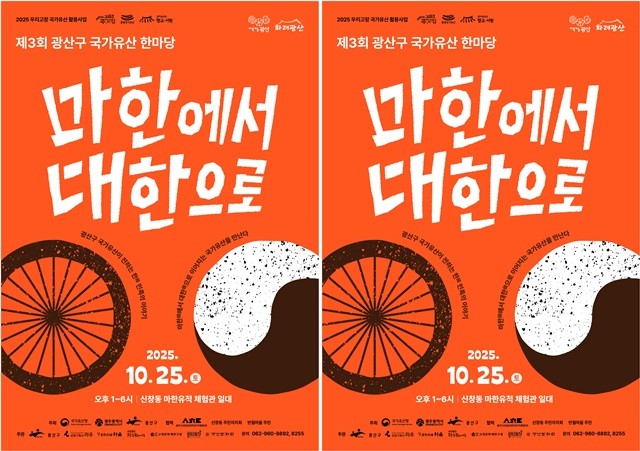 [위키트리 광주전남취재본부 노해섭 기자] 광주시 광산구는 10월 25일 신창동 마한유적체험관 일대에서 ‘제3회 광산구 국가유산 한마당–마한에서 대한으로’를 연다. 올해로 3번째를 맞는 이 행사는 삼한부터 현대까지 광산의 국가유산과 역사를 시민 체험형 콘텐츠로 풀어낸다.