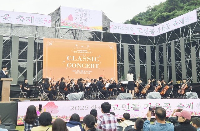 이번 오케스트라 음악회는 '2025 화순고인돌가을꽃축제를 맞아 축제장 주무대에서 펼쳐져 축제장을 찾은 관광객과 주민들에게 아름다운 선율을 선사했다.