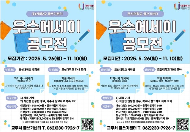 조선대 글쓰기센터, 2025년 우수에세이 공모전 개최