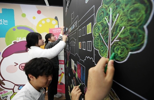 [위키트리 광주전남취재본부 노해섭 기자]21일 광주시 북구 비엔날레 거시기홀에서 ‘경계없는 예술, 모두의 축제’라는 주제로 열린 아트페스티벌에 관람 온 학생과 주민들이 나도작가 대형 캔버스존 체험을 하고 있다.