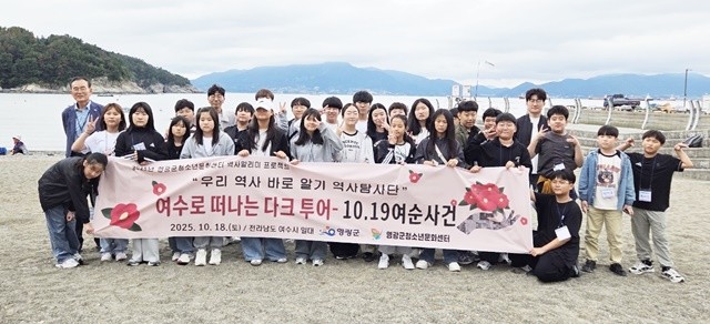 [위키트리 광주전남취재본부 노해섭 기자]영광군(군수 장세일)은 지난 10월 18일 관내 12세~13세 청소년 30명을 대상으로 전라남도 여수시에서 여순사건 역사탐방 및 체험활동을 실시했다.