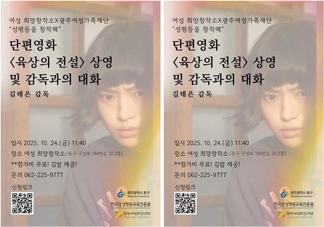 영화제는 오는 24일 오전 11시 40분부터 오후 1시까지 여성희망창작소(동구 구성로 194번길 20, 2층)에서 진행되며, 참석자에게는 간단한 브런치가 제공된다.