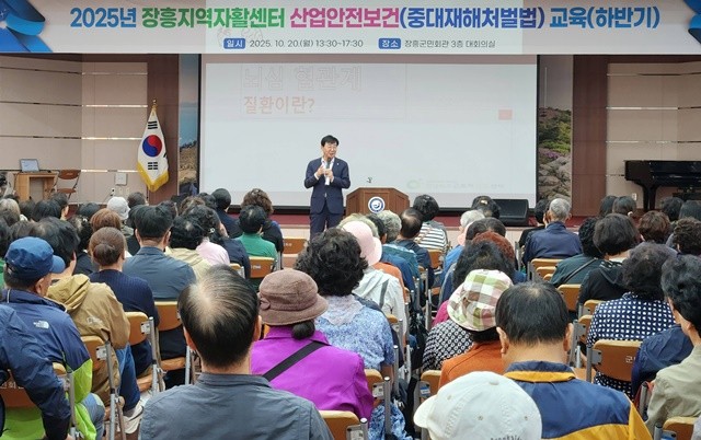 [위키트리 광주전남취재본부 노해섭 기자]장흥지역자활센터가 20일 장흥군민회관에서 자활근로 참여자와 종사자, 사회서비스 인력 등 350여 명을 대상으로 하반기 산업안전보건교육을 개최했다. 이번 교육은 근로자의 건강 보호와 산업재해 예방에 중점을 두었다.