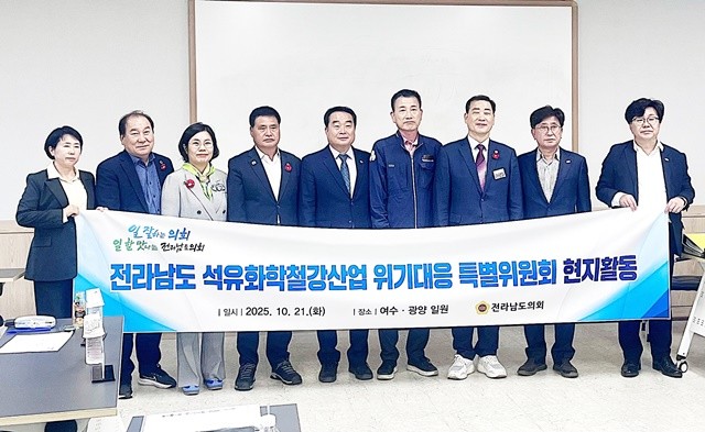 [위키트리 광주전남취재본부 노해섭 기자] 전라남도의회 석유화학철강산업 위기대응 특별위원회(위원장 최무경)가 10월 21일 여수 국가산단의 대한산업보수(주)를 찾아 현장의 목소리를 직접 들었다. 이날 방문에는 위원회 소속 의원들과 여수시 관계자, 경영자협의회가 함께해 산단 기업들의 경영상 애로와 현안 과제에 대해 의견을 나눴다.