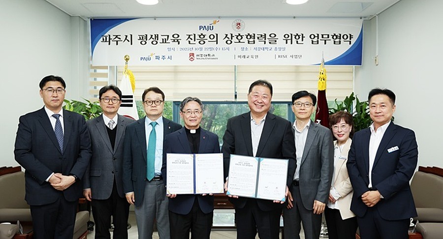 경기 파주시(시장 김경일)는 지난 22일, 서강대학교 본관에서 김경일 파주시장과 서강대학교 심종혁 총장 등이 참석한 가운데 서강대학교와 2026년 「일생일대 프로젝트」를 공동 기획·운영하기 위한 평생교육 진흥 업무협약을 체결했다고 밝혔다.