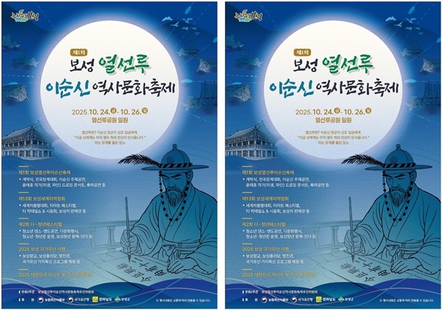 [위키트리 광주전남취재본부 노해섭 기자]보성군(군수 김철우)이 오는 10월 24일부터 26일까지 보성읍 열선루공원에서 ‘제1회 보성 열선루 이순신 역사 문화 축제’를 연다. 이 축제는 이순신 장군이 장계를 올린 역사적 장소인 열선루의 의미를 되새기며, 가족 모두가 즐길 수 있도록 다양한 프로그램으로 꾸며졌다.