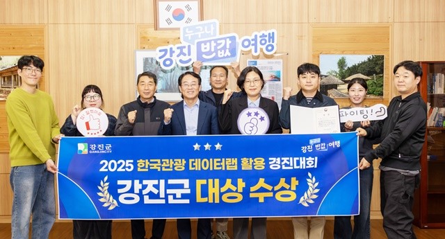 [위키트리 광주전남취재본부 노해섭 기자]강진군이 문화체육관광부와 한국관광공사가 주최한 ‘2025 한국관광 데이터랩 활용 경진대회’에서 영예의 대상을 수상했다.