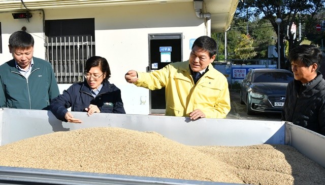 [위키트리 광주전남취재본부 노해섭 기자]정철원 담양군수가 28일 봉산면 담양통합미곡종합처리장(RPC)를 찾아 공공비축미(산물벼) 수매 현장을 점검하고, 출하 농가와 농협 관계자들을 격려했다.