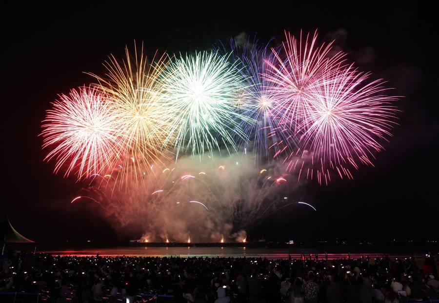 이어 1만 5천여 발의 불꽃이 바다 위로 터지며 장관을 이뤘고, 해변 곳곳에서는 관람객의 탄성이 이어졌다.