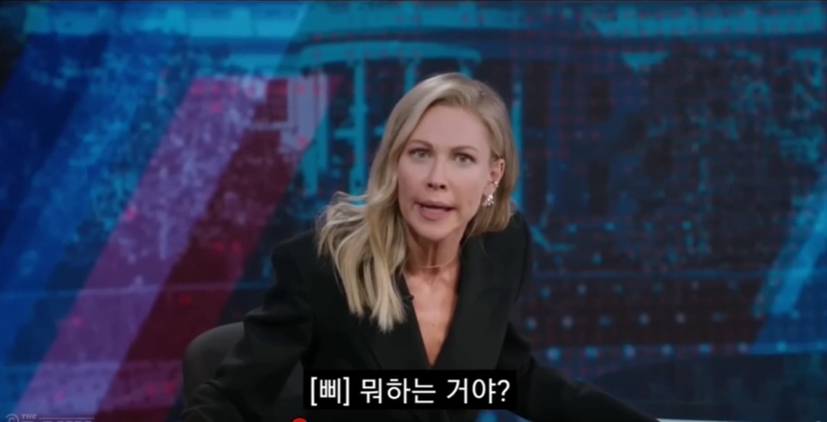 금발 여성 진행자는 "황금 왕관! 우리 대통령을 위한 정말 사랑스럽고 사려 깊은 선물이네요"라고 비꼬며 "한국, 잠깐 여기서 얘기할 수 있을까요?"라고 의자를 돌려 카메라 방향을 바꿨다. 본격적인 논평에 들어간 것.