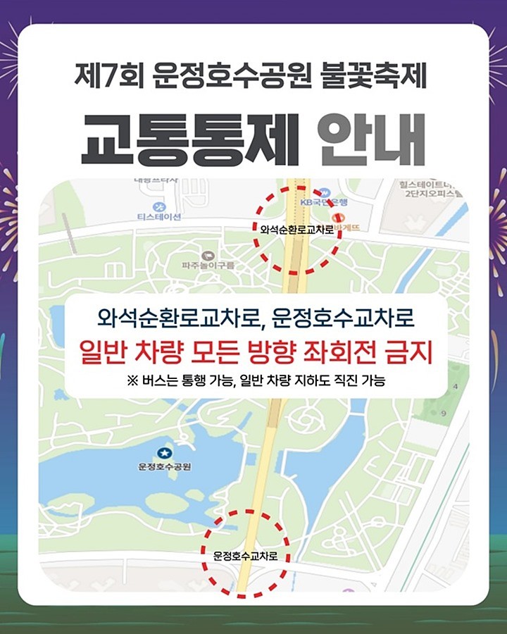파주시, '제7회 운정호수공원 불꽃축제' 내달 1일 개최...주변 교통 일부 통제