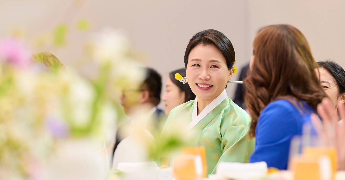 더불어 목도리에는 2025 APEC의 3대 중점과제인 ‘연결, 혁신, 번영’을 상징하는 한글 자모와 APEC 엠블럼을 금박 기법으로 새겨 전통과 현대의 미감을 조화시켰다. 옥색과 금색의 배색은 곡옥(曲玉)으로 장식된 신라시대 금관에서 모티브를 얻은 것으로, ‘APEC 경주 개최’의 상징성을 강조했다.