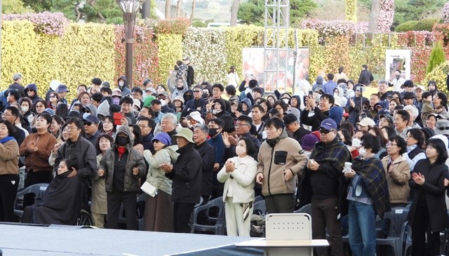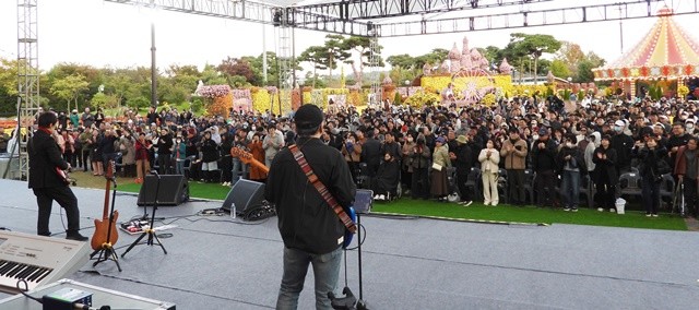 [위키트리 광주전남취재본부 노해섭 기자]1일, 함평엑스포공원 특설무대. 김창완 밴드의 등장과 함께 축제장은 금세 함성으로 가득 찼다. 관람객들은 휴일을 맞아 가족·연인과 삼삼오오 몰려들며 공연장을 꽉 채웠다.