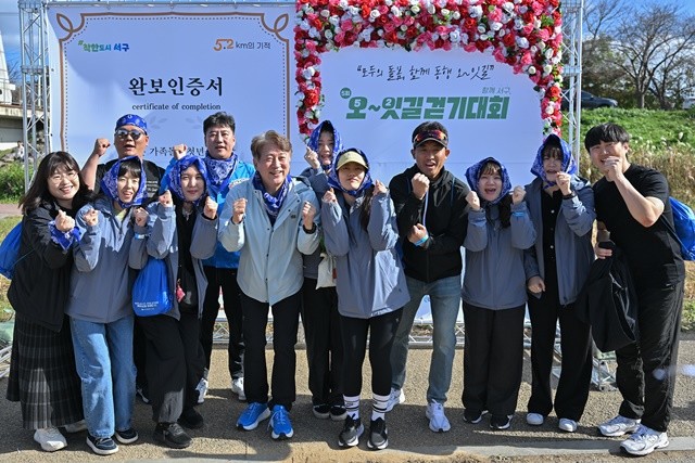 광주 서구(구청장 김이강)는 2일 서구 극락교 하부 일원에서 가족돌봄청년·장애인·어르신·돌봄제공자 등이 참석한 가운데 ‘제5회 함께 서구, 오~잇길 걷기대회’를 개최했다. 오잇길 걷기대회는 '오(5)천원의 나눔으로 우리 이(2)웃의 희망을 잇는 5.2km의 길'이라는 의미이며, 가족돌봄청년을 지원하기 위해 열리는 서구 대표 주민참여형 나눔 축제다. 광주 서구 제공