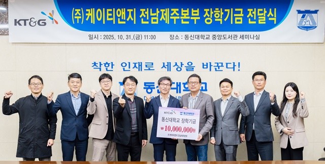 KT&G와 동신대는 2023년 산학협력 협약을 체결한 후 매년 장학금을 전달해왔으며, 2023년 600만원, 2024년과 2025년에는 각각 1천만원을 기부하는 등 꾸준한 후원으로 지역 청년들의 성장에 힘을 보태고 있다.