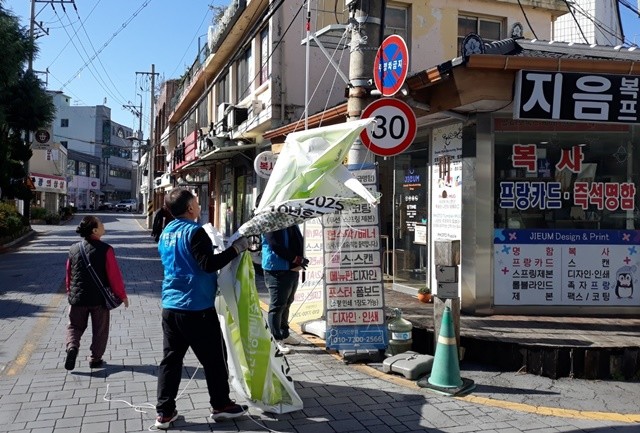 또 추석 연휴가 끝난 뒤에 관내 곳곳에 개인 홍보를 위한 대량의 불법 현수막이 나부끼면서 구청에서 또다시 수거에 나서는 일이 되풀이됐다.