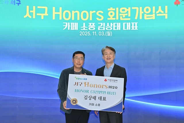 [위키트리 광주전남취재본부 노해섭 기자]광주시 서구(구청장 김이강)는 3일 서구청 1층 기부자 명예의 전당에서 카페 소풍 김상태 대표의 서구 아너스 회원가입식을 가졌다. 광주 서구 제공