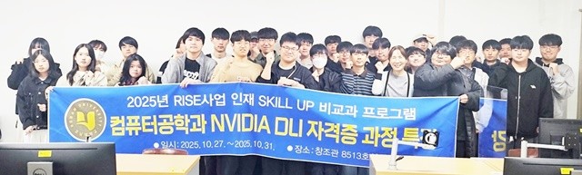 컴퓨터공학과 오명훈 학과장은 “이번 NVIDIA DLI 자격증 취득은 학생들의 기술 수준이 한 단계 도약하는 계기가 되었다”며, “앞으로도 RISE사업과 연계하여 산업 현장형 AI 전문 인재 양성 프로그램을 지속적으로 확대할 계획”이라고 밝혔다.