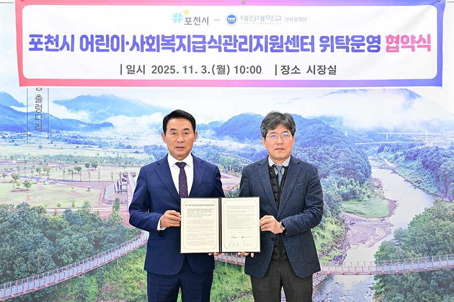 위탁 기간은 2026년 1월 1일부터 2028년 12월 31일까지 3년간이며, 대진대학교 산학협력단이 ‘포천시 어린이·사회복지급식관리지원센터’를 위탁·운영하게 된다.