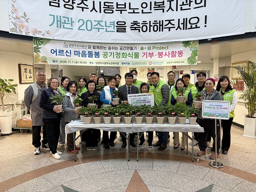 경기 남양주도시공사(사장 이계문, 이하 공사)는 7일(금), *남양주시동부노인복지관(관장 정영민, 이하 동부노인복지관)을 방문하여 남양주시 수동면에 거주하는 취약계층 어르신들을 위한 공기정화식물 화분 50개를 제작하고 기부했다고 밝혔다.