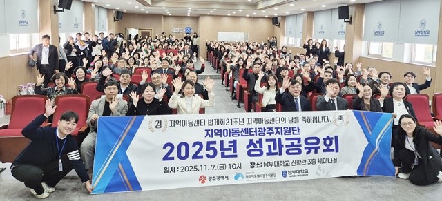 [위키트리 광주전남취재본부 노해섭 기자] 지난 21년간 광주 골목골목의 아이들에게 든든한 울타리가 되어준 지역아동센터의 스물한 번째 생일잔치가 열렸다. 지난 7일 남부대학교에서 열린 '2025 지역아동센터의 날'은 단순한 기념식을 넘어, 아이들의 웃음과 성장이 우리 사회의 가장 빛나는 성과임을 확인하는 감동의 축제였다.