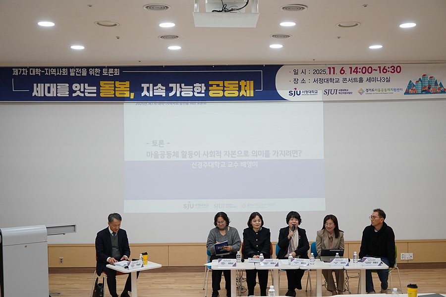 서정대학교(총장 양영희)는 지난 7일 교내 콘서트홀 세미나3실에서 ‘제7차 대학-지역사회 발전을 위한 토론회’를 개최하고, 지역 돌봄 체계 강화와 지속가능한 공동체 모델 구축 방안을 논의했다.