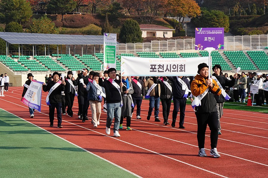 경기 포천시의회(의장 임종훈)는 지난 7일, 동두천시종합운동장에서 개최된 ‘2025 경기도시·군의회의원 한마음체육대회'에 참가하여 경기도 내 지방의회 간 소통과 협력을 증진하는 뜻깊은 시간을 가졌다.