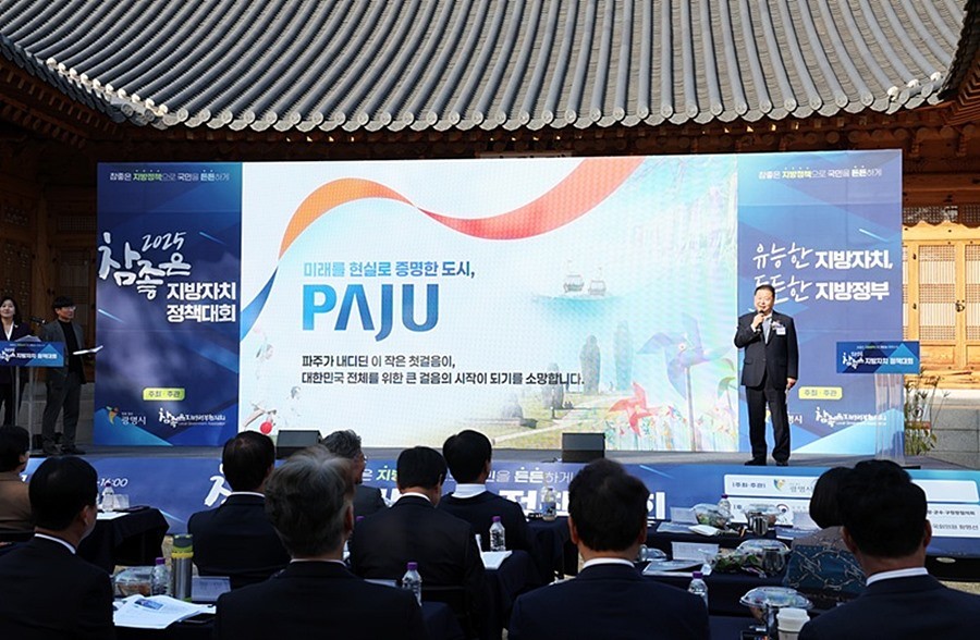 경기 파주시(시장 김경일)는 지난 7일 국회 사랑재에서 열린 ‘2025 참좋은 지방자치 정책대회’에서 김경일 시장이 ‘기본사회 선도도시 파주’를 주제로 우수사례를 발표해 행정안전부장관상을 수상했다고 밝혔다.