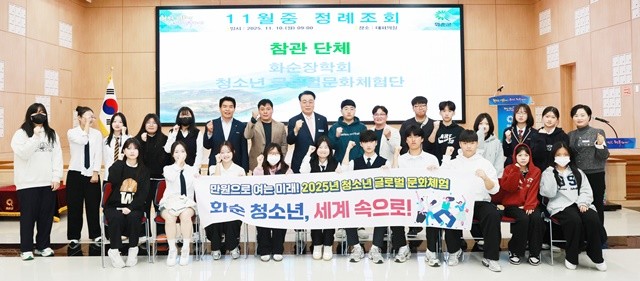 [위키트리 광주전남취재본부 노해섭 기자]화순장학회가 추진한 ‘만원으로 여는 미래, 2025년 청소년 글로벌 문화체험’에 참여한 학생들이 11월 10일 화순군청 정례 조회에서 싱가포르 연수 소감을 발표했다. 화순고 1학년 김승권·서수민 학생은 “짧은 일정이었지만 다양한 문화를 직접 체험하며 시야가 넓어졌고, 자신감도 얻었다”고 밝혔다.