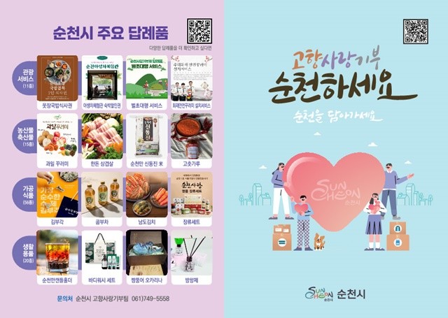 시는 기부자에게 순천 쌀과 로컬푸드 꾸러미 등 농축산물, 남도김치‧명품장류세트 등 가공식품, 순천만국가정원 입장권과 웃장 국밥식사권 등 지역 특색이 담긴 답례품을 맞춤형으로 제공하고 있다. 이를 통해 지역 소상공인에게도 실질적인 도움이 되고 있다.