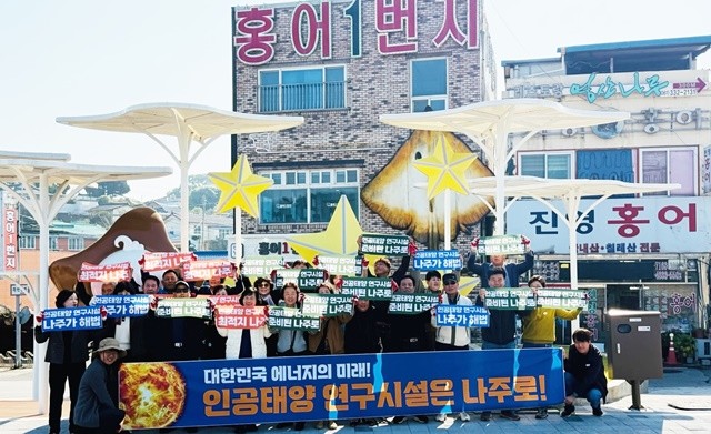11일 나주시(시장 윤병태)에 따르면 영산동은 지난 7일 영산포 홍어거리 일원에서 영산통장협의회와 함께 ‘기초질서 확립 및 인공태양 연구시설 나주 유치 캠페인’을 실시했다.