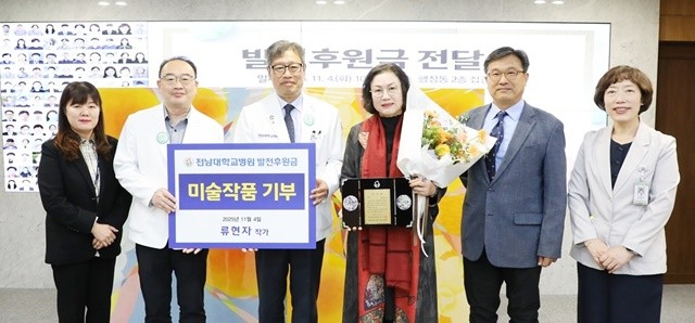 한국 화단의 중추를 이루는 류현자 화백이 자신의 예술혼이 담긴 작품 두 점을 전남대학교병원에 기증하며, 질병과 싸우는 환자와 그 가족들에게 붓으로 쓴 위로와 희망의 메시지를 건넸다.