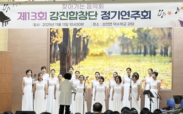 [위키트리 광주전남취재본부 노해섭 기자]강진합창단(단장 김경숙)이 지난 11일 오전 강진군 덕수학교 강당에서 ‘제13회 강진합창단 정기연주회’를 개최했다. 이번 공연은 ‘찾아가는 음악회’를 주제로 군민과 함께하는 문화 소통의 장으로 마련됐다.