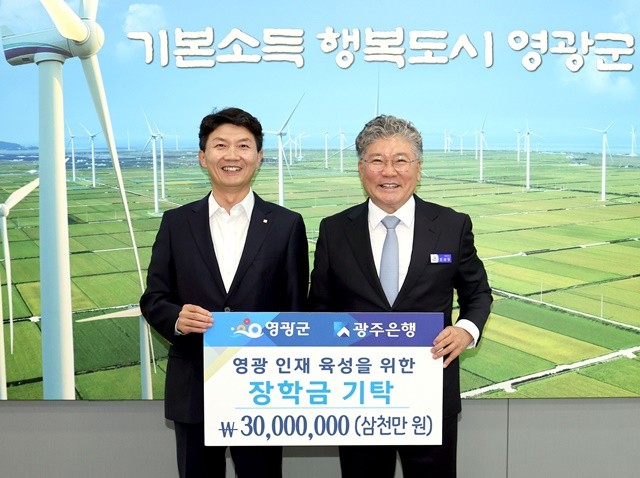 ㈜광주은행, 영광군 인재육성기금에 장학금 3천만 원 기탁