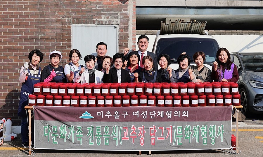 인천 미추홀구(구청장 이영훈) 여성단체협의회는 13일 미추홀구 여성단체 활동공간에서 다문화가정과 함께하는 전통음식 체험 프로그램인 ‘고추장 담그기’ 행사를 진행했다.