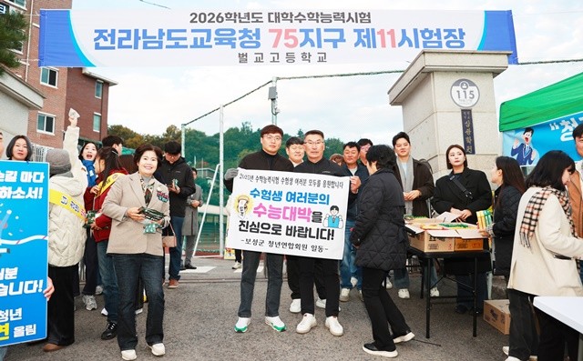 추운 날씨에도 불구하고 보성군 인구정책과 직원들과 청년연합회, 학부모들이 함께 나와 수험생들에게 따뜻한 응원과 격려를 보내며 수능 대박을 기원했다.
