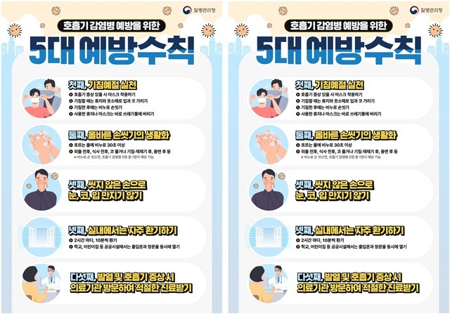 호흡기 감염병 예방을 위해서는 ▲올바른 손 씻기의 생활화 ▲기침 예절 실천 ▲씻지 않은 손으로 눈, 코, 입 만지지 않기 ▲실내 자주 환기하기 ▲발열이나 호흡기 증상이 있을 시 의료기관을 방문해 적절한 진료를 받는 등의 수칙을 준수하는 것이 중요하다.
