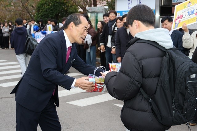 [위키트리 광주전남취재본부 노해섭 기자]고흥군(군수 공영민)은 2026학년도 대학수학능력시험일인 13일, 고흥고등학교 시험장을 찾아 수험생들의 선전을 기원하는 응원 행사를 실시했다고 밝혔다.