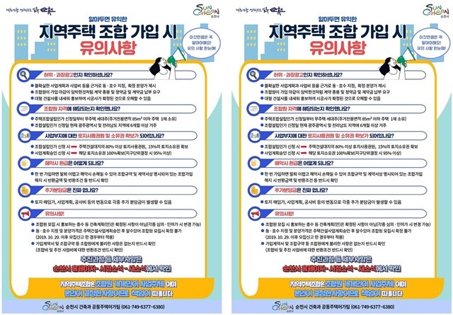전남 순천시, 지역주택조합 가입 시 철저한 확인 당부