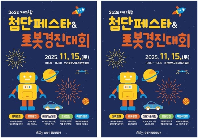 [위키트리 광주전남취재본부 노해섭 기자]순천시(시장 노관규)는 오는 15일 순천로봇교육과학관 일원에서 일상 속 친구로 다가온 로봇의 다양한 미래기술 체험을 위한 “2025 첨단페스타 & 로봇 경진대회”를 개최한다고 밝혔다.