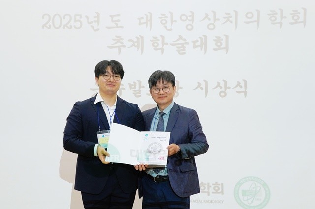 [위키트리 광주전남취재본부 노해섭 기자] 조선대학교치과병원(병원장 임성훈) 영상치의학과 김종원 전공의(지도교수 김진수, 서요섭)가 지난 10월 18일 강릉원주대학교 치과대학에서 개최된 ‘2025년도 대한영상치의학회(학회장 최항문) 추계학술대회’에서 ‘우수발표상’을 수상했다.